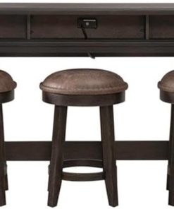 Pemberly Row 4 Piece Set of Console Bar Table & 3 Uph Console Stools in Brown