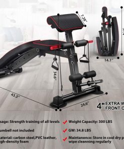 - ✅SIZE & SAVE SPACE : Can be folded and stored. Folded size: 51.57 x 13.4 x 11 inches. Expanded dimensions: 51.57″ length x 13.4″ width x 31.5 inches height. Adjustable weight bench is simple to assemble and easy to carry and store.