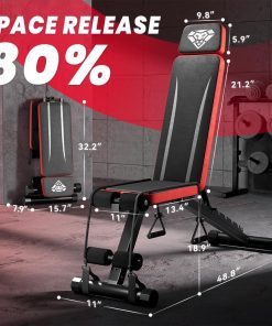 - Quick Fold – Foldable workout bench measures 48.8″L x 15.7″W x 45.3″H. Weight bench for home gym only 21.8lbs, easy to fold and move, folded size is 32.2″L x 15.7″W x 7.9″H. Gym bench is portable and compact with less space in your home gym