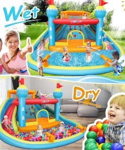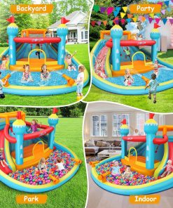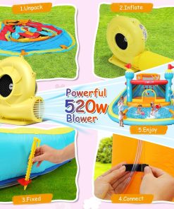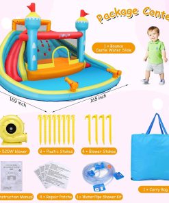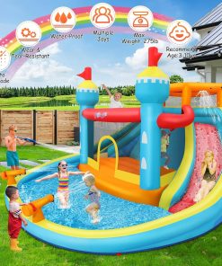 AKEYDIY Bounce House Water Slide with Double Slide,Splashing Pool, Double Water Cannon,Climbing Wall, Giant Water Park W/Heavy Duty GFCI Blower,Inflatable Water Slides Park for Kids Backyard Summer