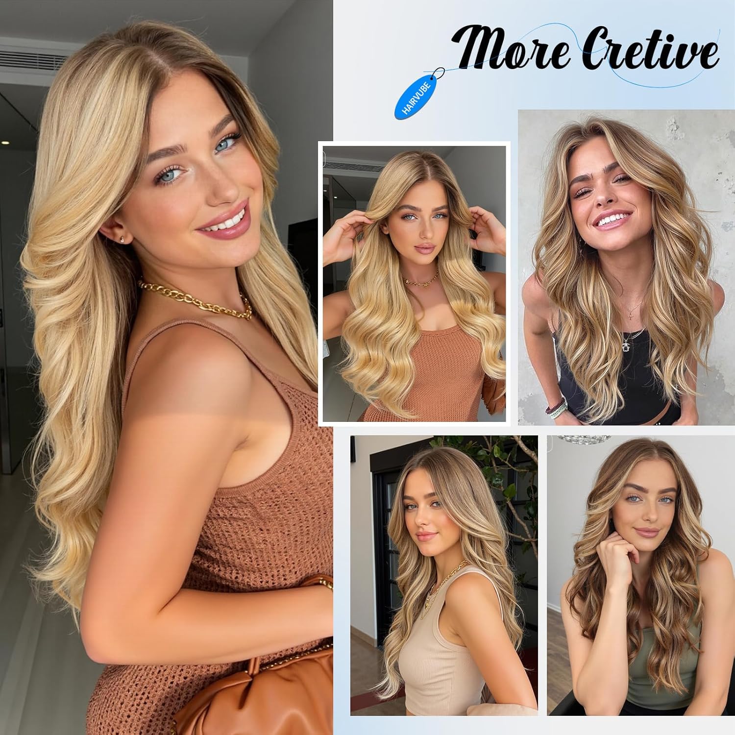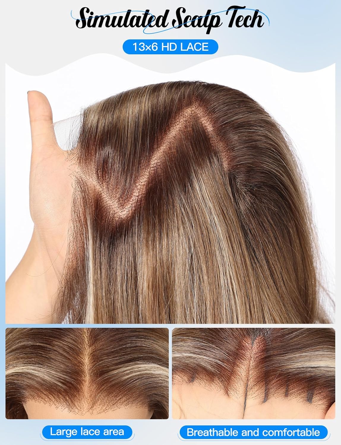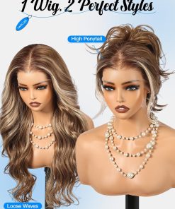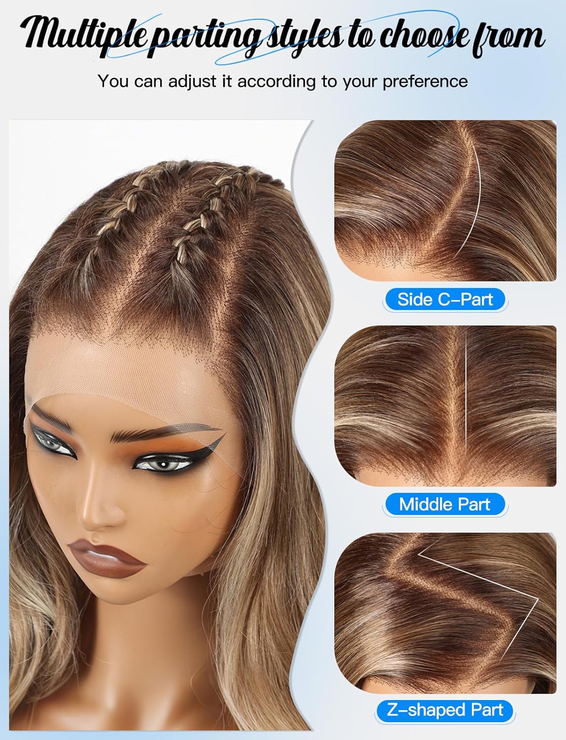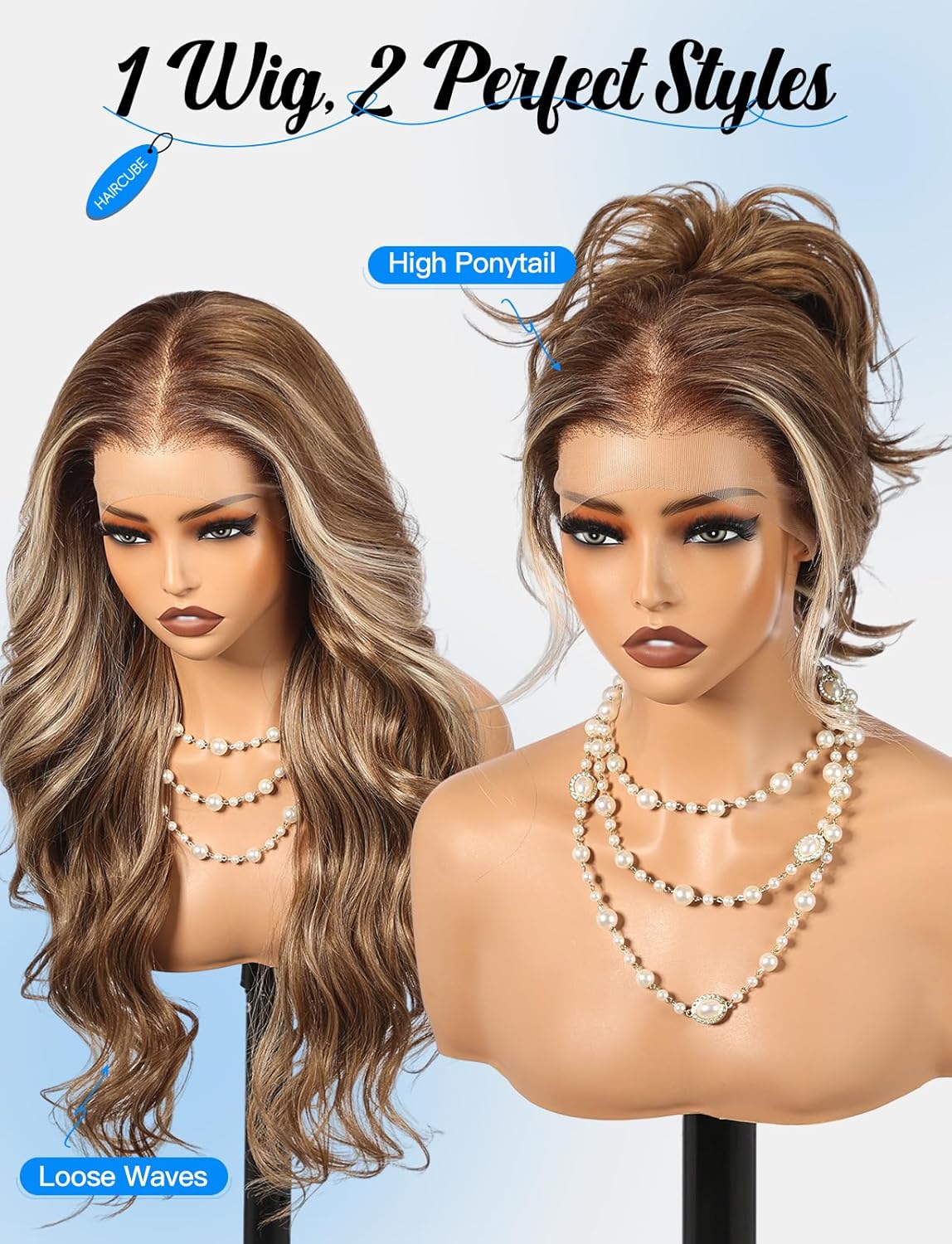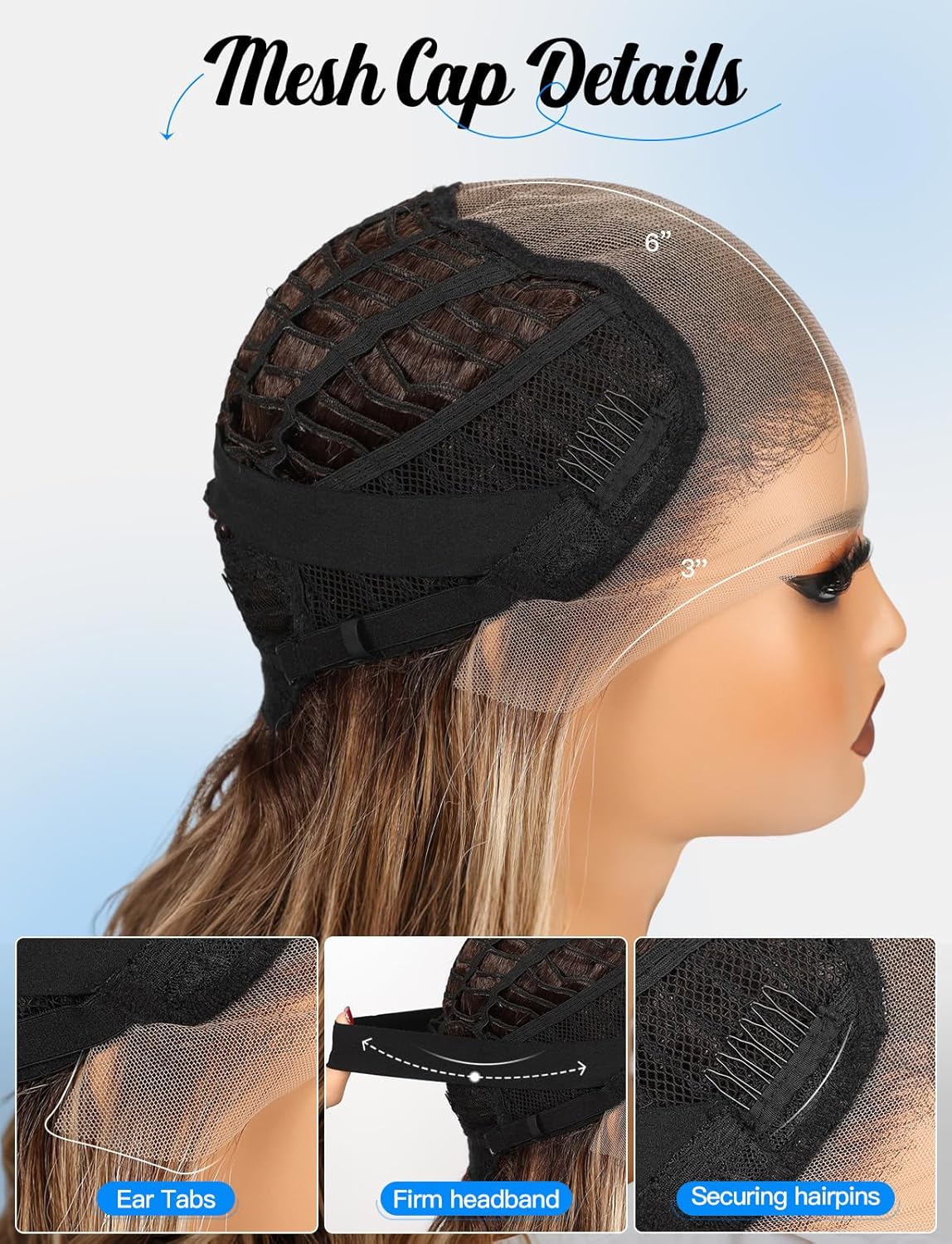 HAIRCUBE 13×6 Glueless Lace Front Wavy Wig, 24 26 28 Inch Lace Synthetic Wigs for Women Ash Brown Color