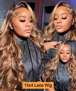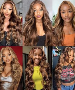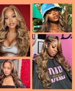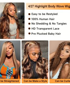 Honey Blonde Ombre Lace Front Wig Human Hair Highlight Wig Human Hair 4/27 Colored Body Wave HD Lace Front Wigs Human Hair Pre Plucked with Baby Hair Frontal Wigs for Women 180% Density 28 Inch