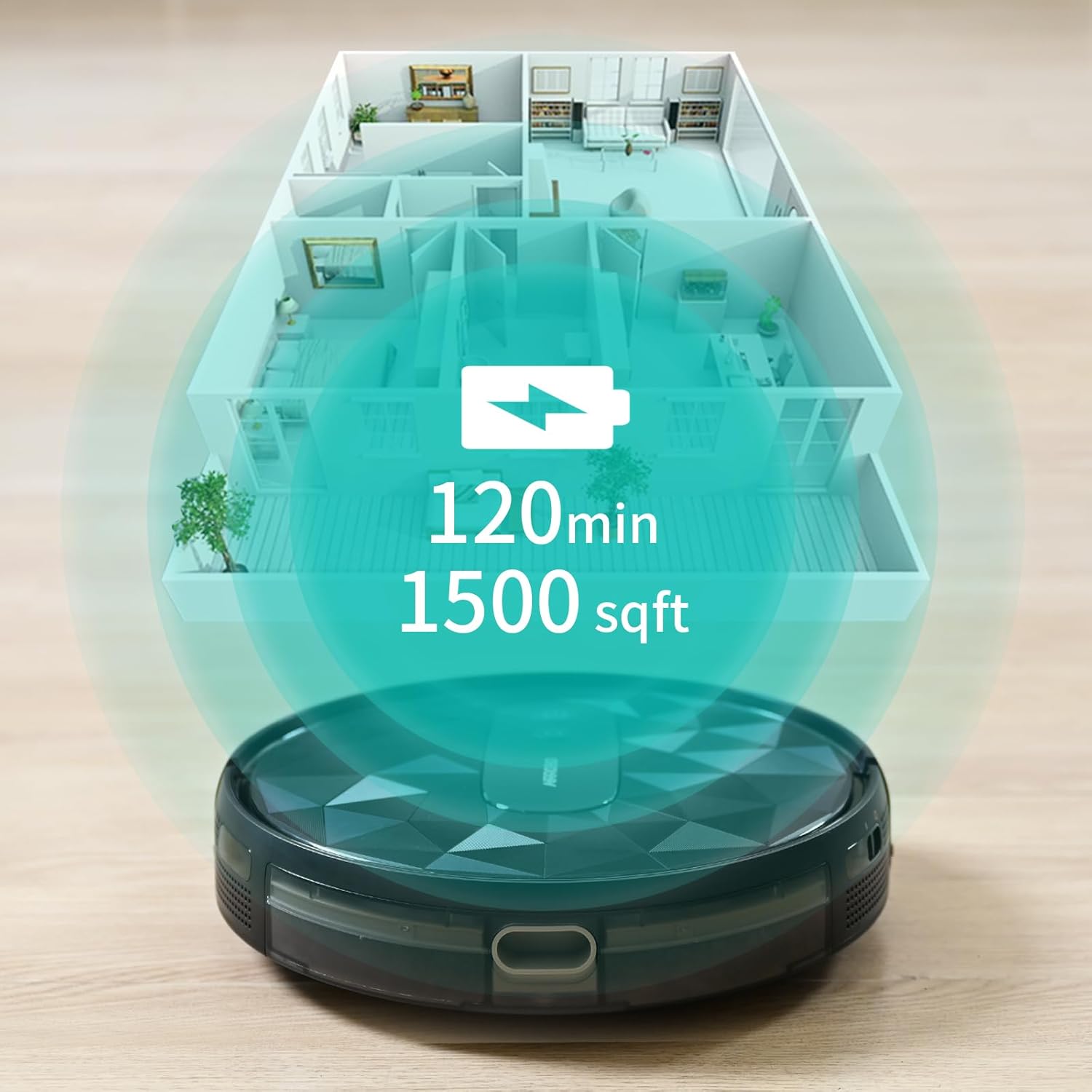 - INTELLIGENT NAVIGATION & 120 MINS RUNTIME: Equipped with smart navigation and a zigzag cleaning pattern, this robotic vacuum ensures thorough coverage. The 120-minute runtime and auto-recharge feature keep cleaning uninterrupted.