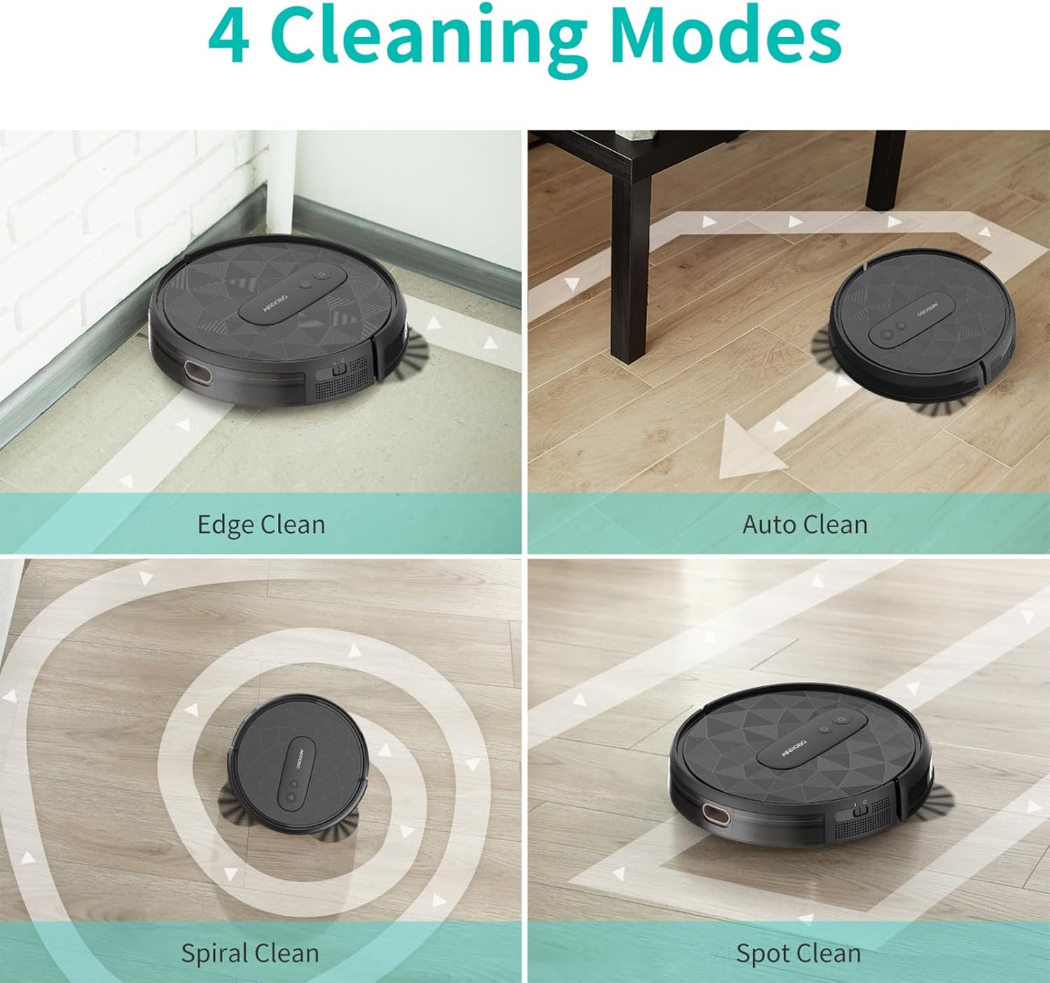 - 3-STAGE CLEANING SYSTEM & 4 MODES: Featuring a unique 3-stage cleaning system and 4 cleaning modes (Auto, Spot, Edge, and Turbo), This robot cleaner adapts to all your cleaning needs.