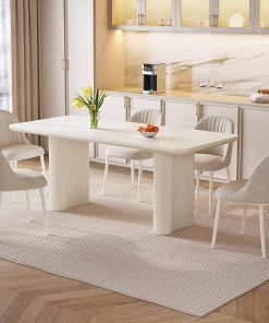 Spacious and Comfortable Large Dining Experience: The Miuuod Rectangle Extra Large Dining Table is innovatively designed to cater to modern families. With a generous tabletop, it comfortably accommodates 4-8 diners, providing ample elbow room for each person. The white table top creates an inviting atmosphere, encouraging enjoyable meals and conversations with loved ones.