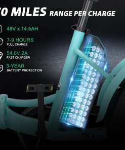 - Portable Power: Equipped with a removable 48V 14.5Ah battery, you can confidently cover 35-45 miles on a single charge. Enjoy extended riding and the flexibility to charge on the go