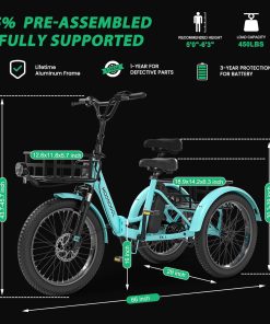 - Robust Aluminum Frame: Our folding electric tricycle boasts the aluminum alloy bike frame designed for lasting strength and durability. It provides a solid platform for all your rides