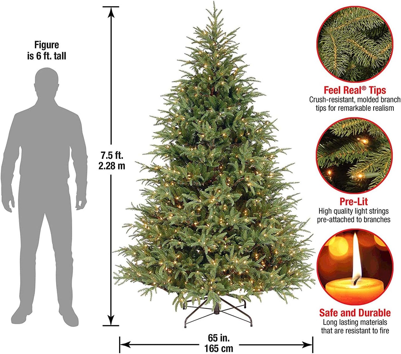 National Tree Company 7.5 ft Pre-Lit Fraser Grande Artificial Christmas Tree, 1,000 Clear Lights, 3,719 Tips, Includes Stand, Green