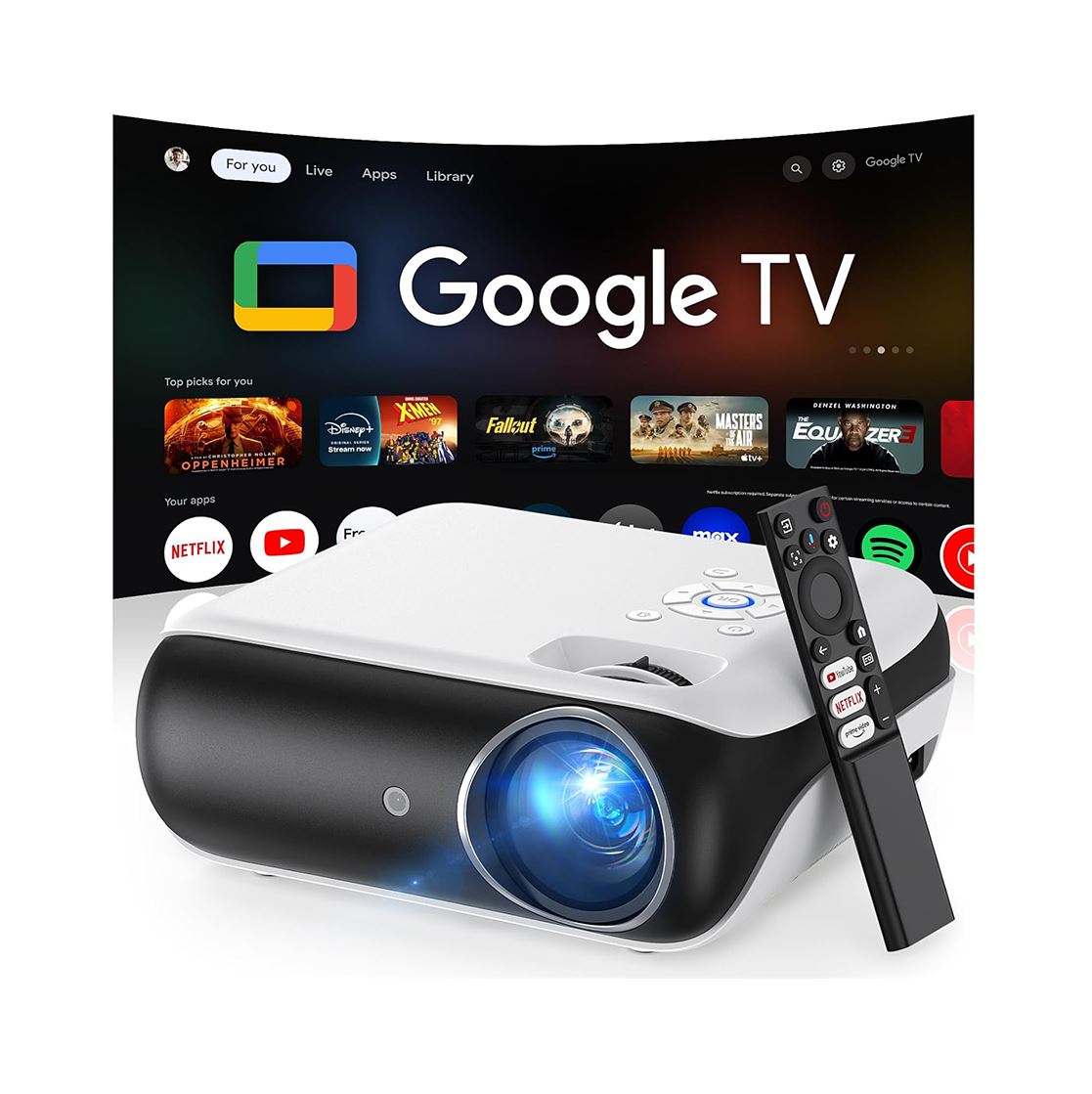 Official Licensed Google TV Smart Projector, HAPPRUN 4K UHD Home Theater with Dolby Sound, Wi-Fi & Bluetooth, Built-in Streaming Apps, Compatible with Games Consoles & Smartphone, Indoor & Outdoor Use