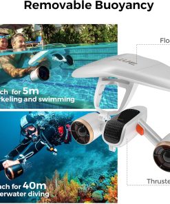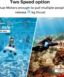 - 2-Speed Gear Switch: Choose between two speeds with the water scooter—1.2 m/s (2.68 mph) for a leisurely view or 1.8 m/s (4.02 mph) for an exhilarating thrill