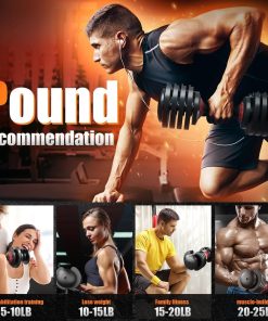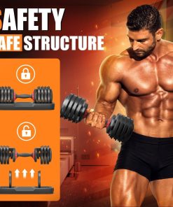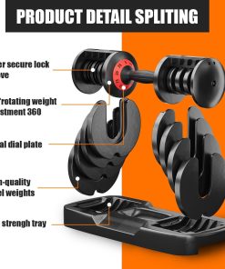 VEICK 25/55 lbs Adjustable Dumbbell with Anti-Slip Turning Handle, Fast Adjust Weight for Men Women, Exercise Equipment with Tray for Home Gym Full Body Workout Fitness